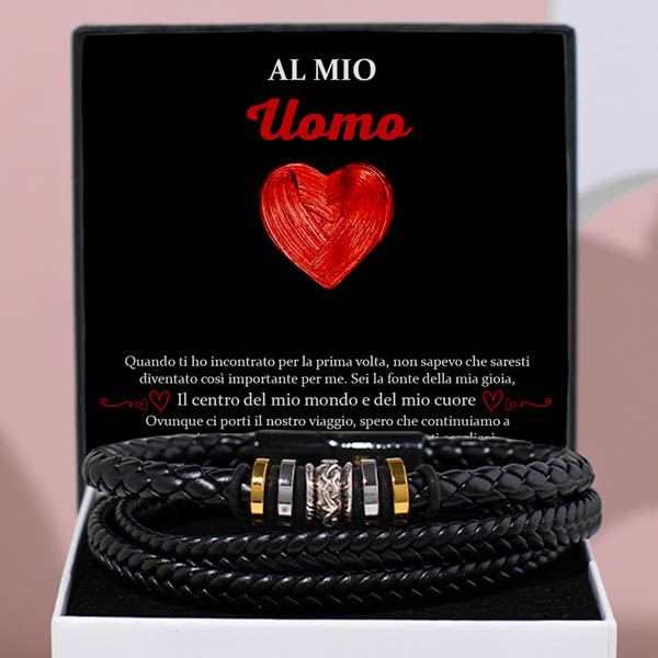Il braccialetto è progettato in uno stile classico, che lo rende una scelta perfetta per uomini di tutte le età. Il bracciale aggiunge un tocco di personalità e unicità al look di tutti i giorni, poiché si abbina perfettamente sia ad abiti formali che casual. Vanta un design multistrato che aggiunge un fascino speciale e una dimensione davvero speciale a qualsiasi polso. Il motivo ad incastro crea uno straordinario effetto visivo, combinando eleganza e look moderno.