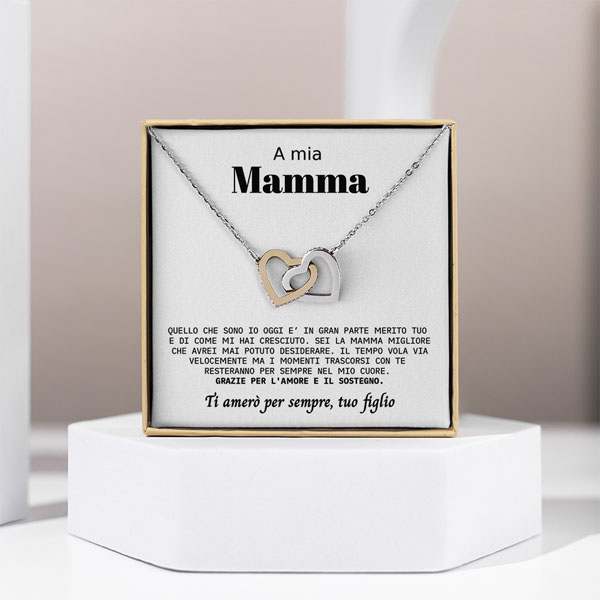 La collana rappresenta un bellissimo simbolo d’amore che unisce design elegante e profondo valore emotivo. Caratterizzata da un motivo di due cuori intrecciati, questa collana rappresenta l’unione e l’amore eterno, rendendola il regalo perfetto per una persona cara.