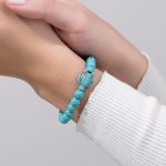 Questo bellissimo bracciale in pietra turchese è ricco di significato; parla di saggezza, pazienza e resistenza, doti da sempre attribuite alle tartarughe marine. Questo bracciale con tartaruga marina, quando lo si indossa, ricorda la sensazione di leggerezza e spensieratezza delle giornate in spiaggia. Le pietre sono turchesi e un cordoncino elastico e resistente le tiene insieme. Una tartaruga marina turchese nuota sul filo di queste pietre azzurro brillante per un accessorio di moda irresistibile.