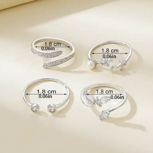 Questo set è caratterizzato da anelli semplici e aperti ornati da zirconi a farfalla, pensati per le ragazze e le donne che apprezzano l’eleganza e la semplicità. 🦋💍