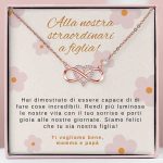 Questo splendido ciondolo intreccia magnificamente un cuore e un simbolo dell’infinito, simboleggiando l’amore eterno e la connessione. Realizzato con un’attenta attenzione ai dettagli, il pezzo elegante è una sincera espressione di affetto e devozione.