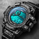Con il suo elegante cinturino in silicone nero e la cassa in plastica abbinata, questo orologio non è solo elegante ma è anche costruito per resistere ai rigori degli allenamenti più duri e delle avventure all’aperto.