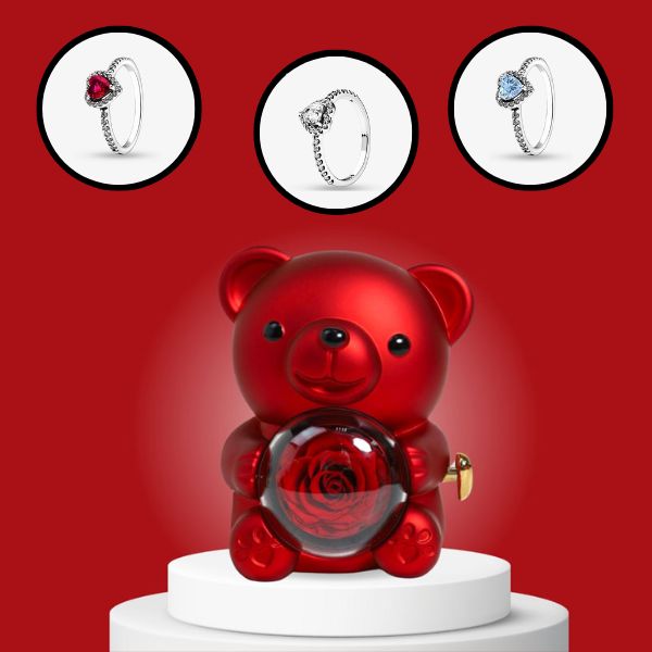 🌹💍 Set regalo amore eterno: Portagioie ROSBEAR e Anello della Promessa HEARTISO 💍🌹🌹