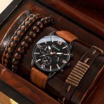 Un set di un orologio e tre bracciali progettato per l’uomo moderno che apprezza la semplicità e l’eleganza.